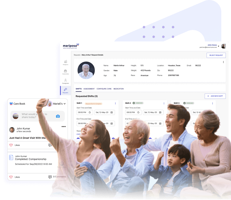 This page includes information on how working with your agency on Mariposa will help with care coordination and communication and collaboration with your agency. When you accept that invite, you’ll unlock a shared space for everyone in your Care Circle to stay organized, informed, and involved in your loved one’s day‑to‑day care, specifically: