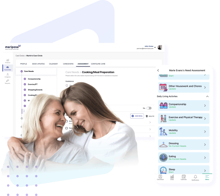 - Care circle admins contribute to their loved one’s needs assessment and care plan